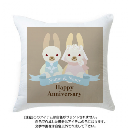 ウサギのカップルのイラスト入りクッションをオリジナルでプリント 結婚記念のテンプレート