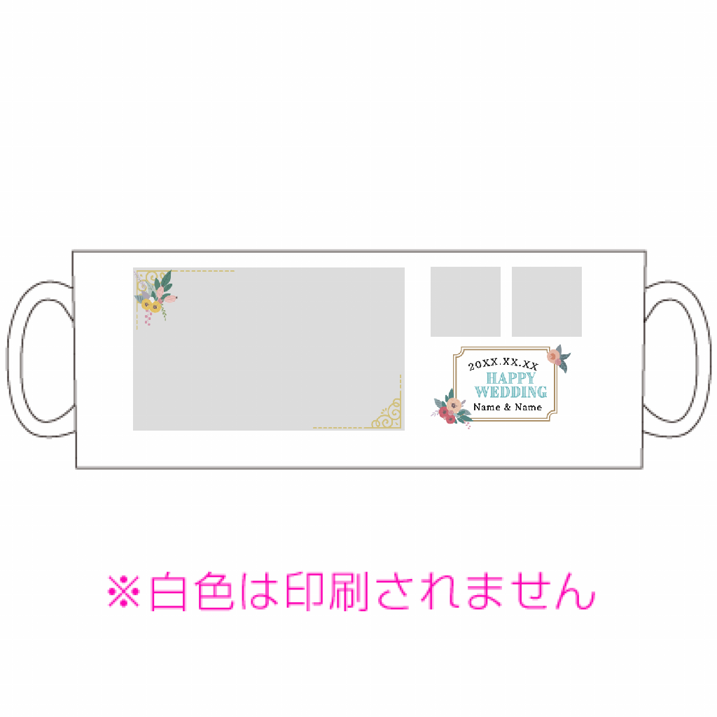 おしゃれなウェディングメッセージの写真入れマグカップをオリジナルでプリント 結婚祝いのテンプレート