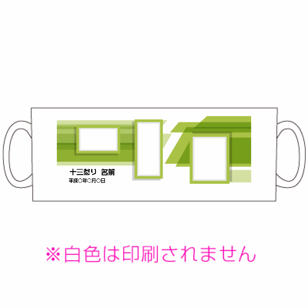 グリーンのモダンデザインがおしゃれな十三参りの写真マグカップをオリジナルでプリント 十三参りのテンプレート
