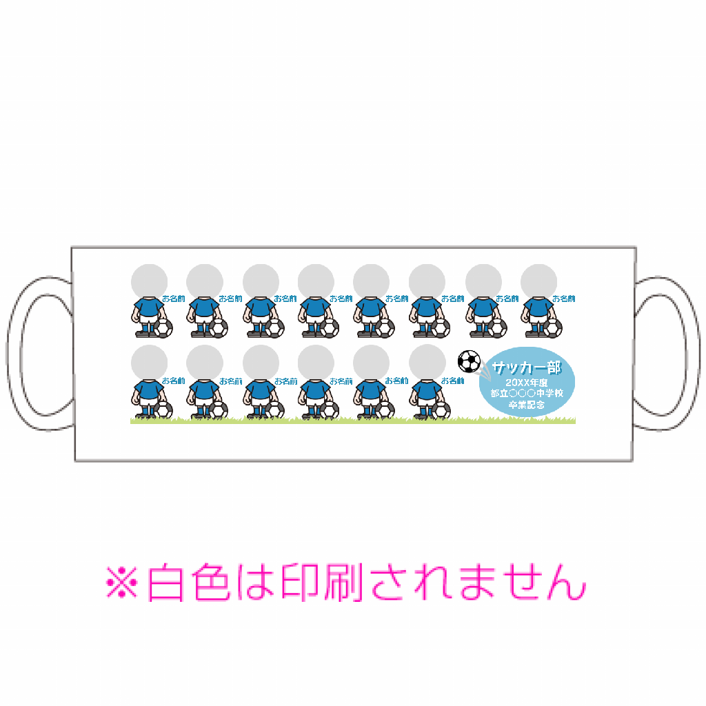 サッカー部チームメイトの顔写真が入れられる記念マグカップをオリジナルでプリント 卒団記念のテンプレート
