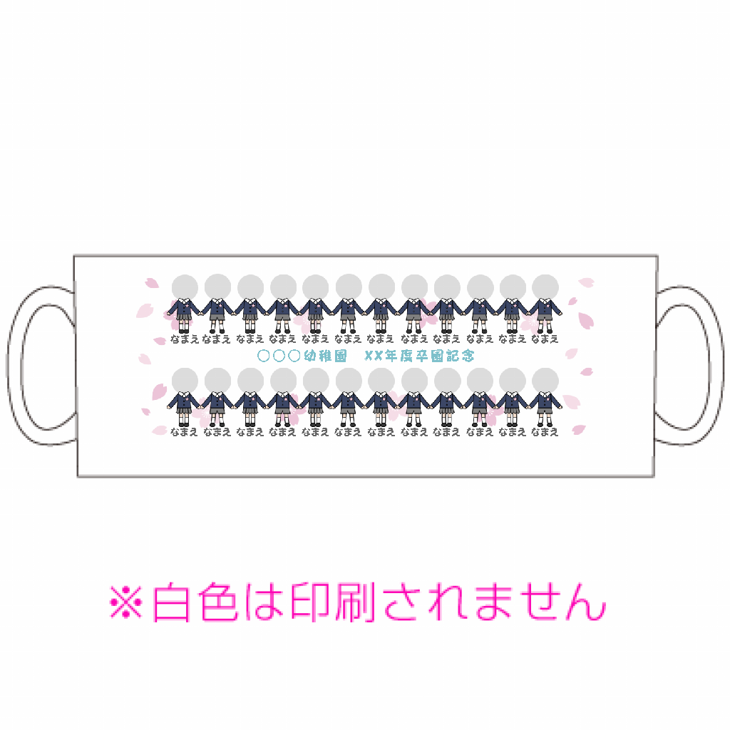 制服姿にみんなの顔写真を入れられる卒園マグカップをオリジナルでプリント 卒園祝いのテンプレート