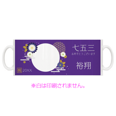紫の花柄がおしゃれな写真と名前入りマグカップをオリジナルでプリント 七五三のテンプレート