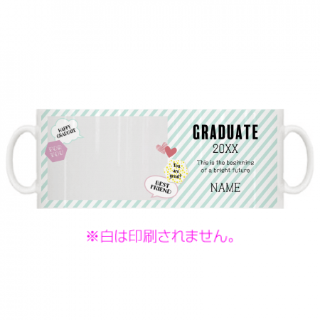 写真を入れられるストライプフレームのマグカップをオリジナルでプリント 卒業祝いのテンプレート
